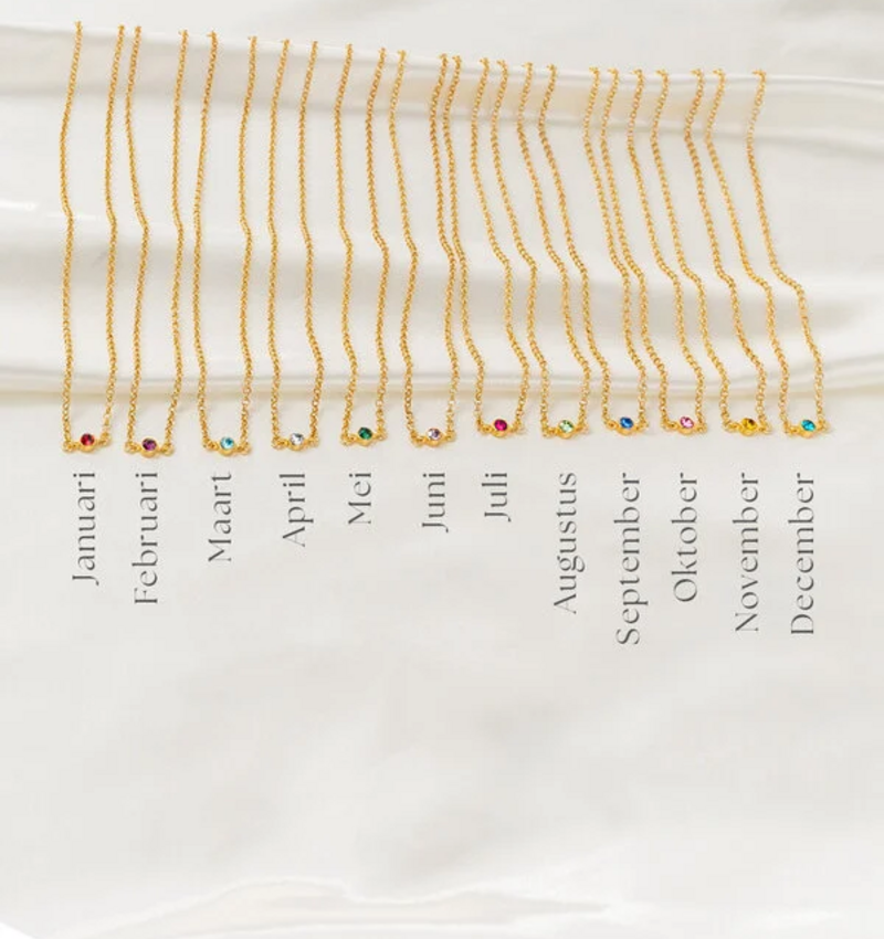 ♡ Voor dit sieraad gebruiken we zirconia kristallen waarvan de kleuren zijn geinspireerd op de oorsprokelijke edelstenen. Zo is Januari donkerrood, de kleur van Granaat.