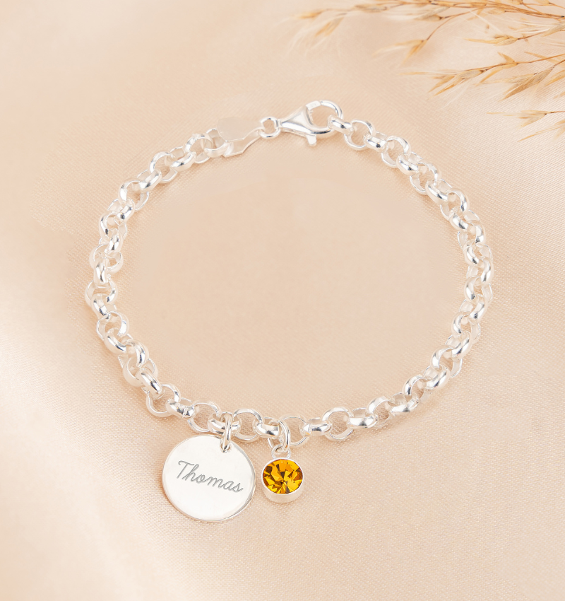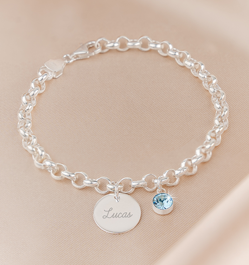 Schitterende armband die je naar wens kan samenstellen. Voor jouw dierbaren graveren we de naam en monteren we een geboortesteen naar keuze. Hoe bijzonder is dat?