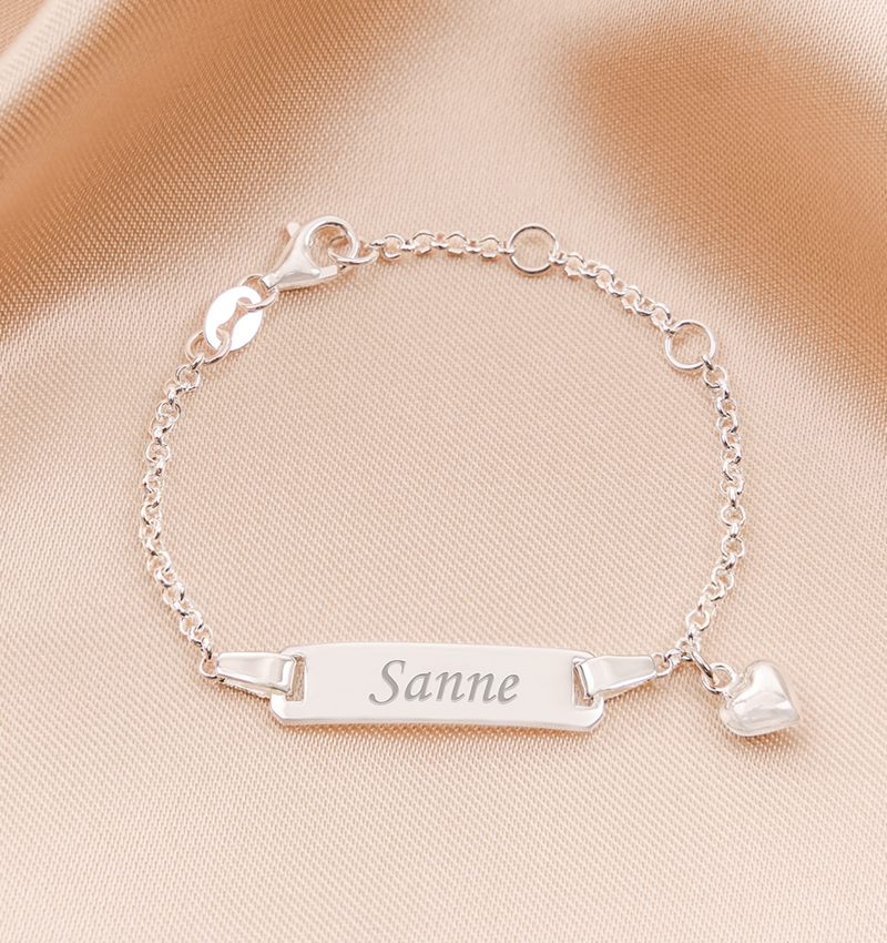 Babyarmband 'Classic Bar' met Hartje Bedel - Sterling Zilver