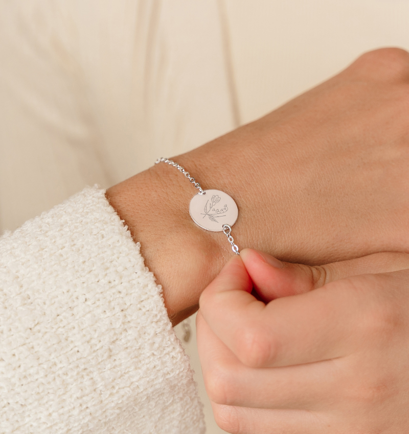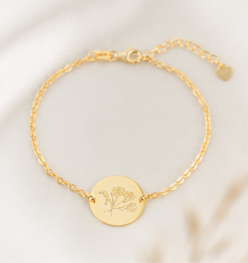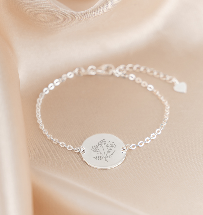 Armband met Geboortebloem Boeket 'Elegant Disc' - 925 Sterling Zilver