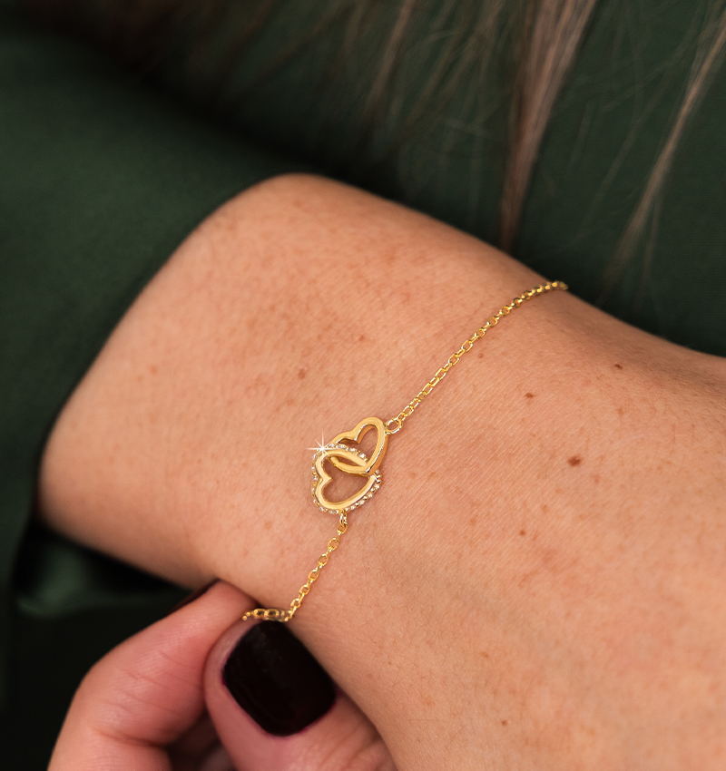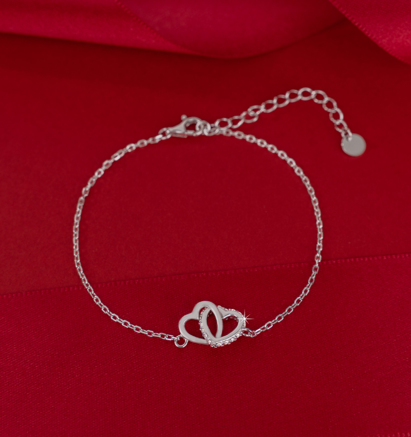 De 'Connected Heart' armband met kristallen schittert als symbool van liefde en verbondenheid.