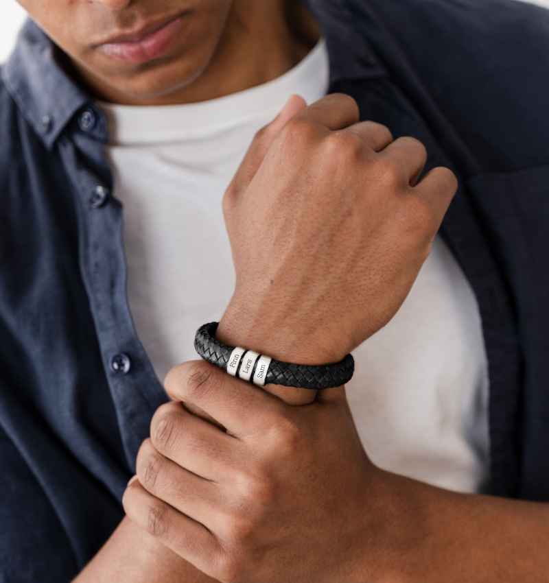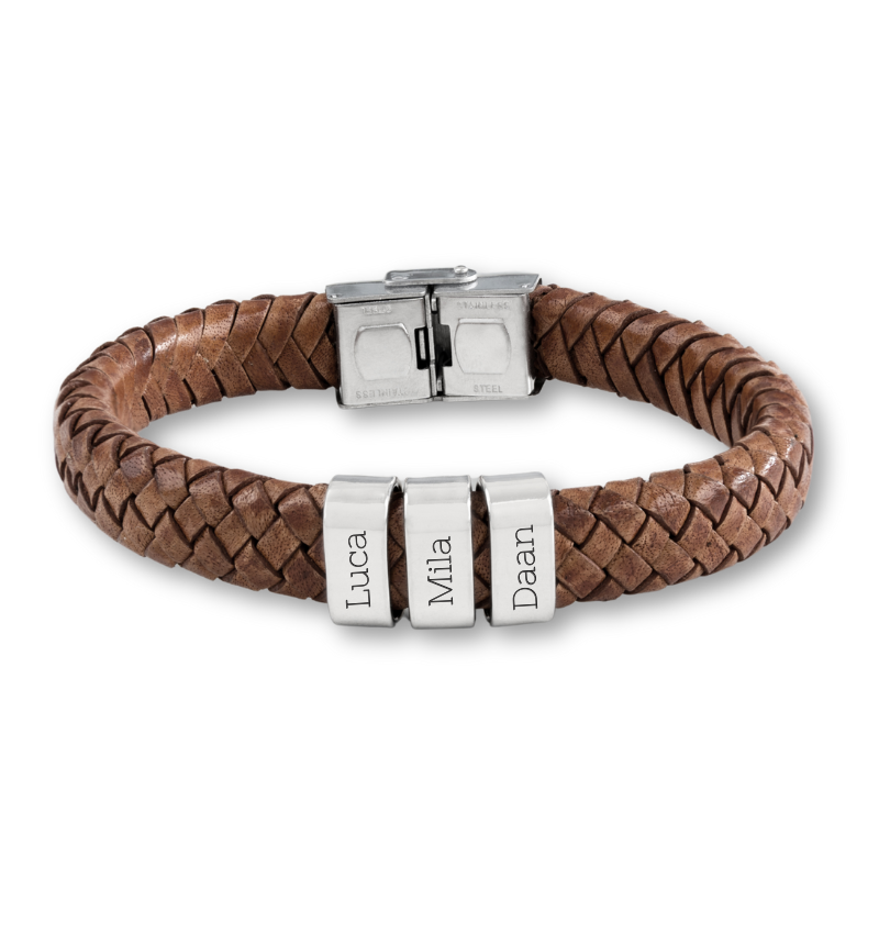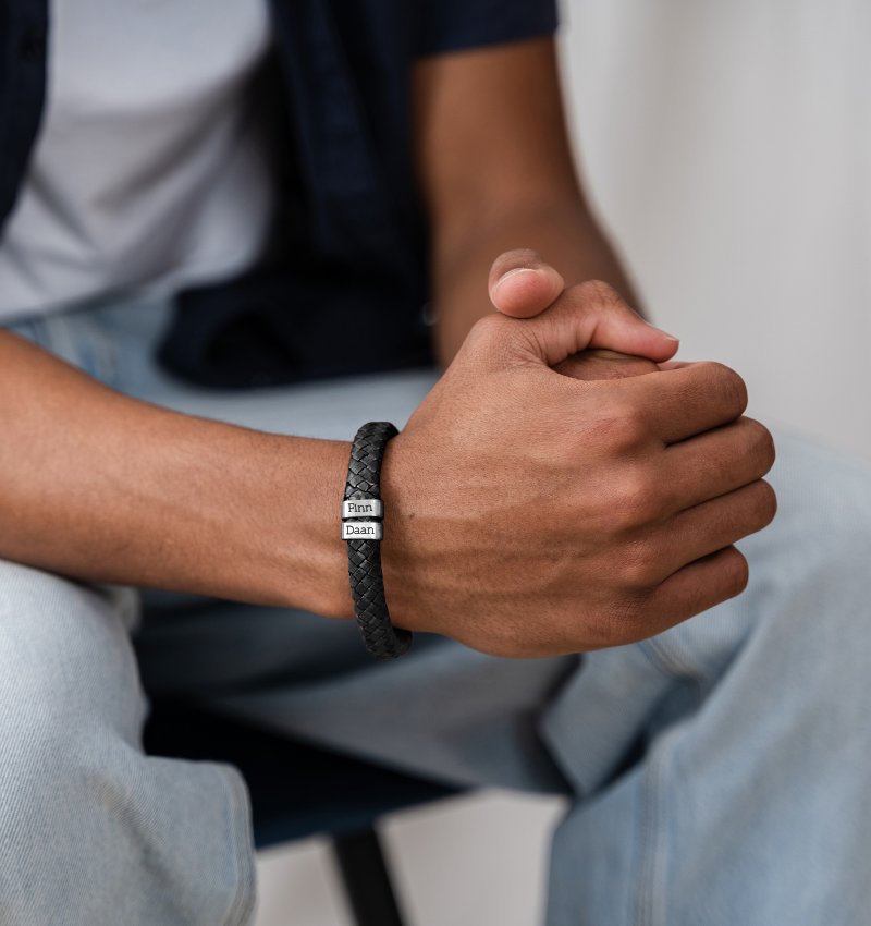 Kies voor de Rock My World armband van écht leer met graveerbeldels en creëer een gepersonaliseerd meesterwerk om je pols. Elke bedel draagt een speciale boodschap, waardoor deze armband niet alleen een fashion statement is, maar ook een emotioneel symbool.