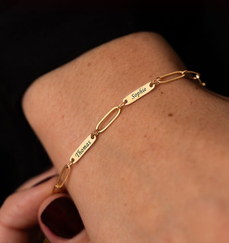 Gepersonaliseerde 3 Namen Armband 'Paperclip' - Zilver
